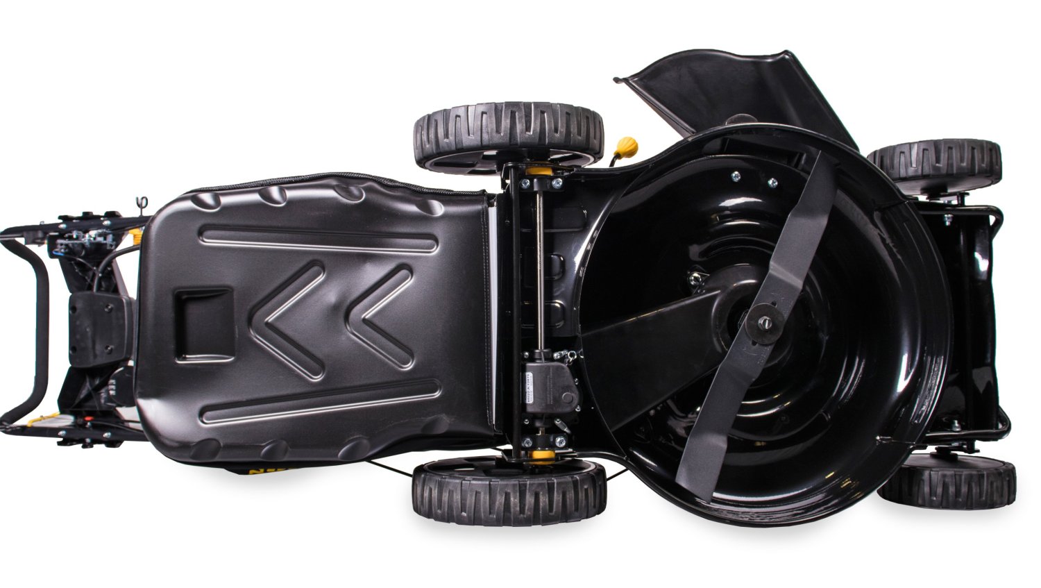 Особенностью этой модели является функция промывки деки, которая значительно облегчает очистку устройства после работы. Также косилка имеет функцию мульчирования, позволяющую использовать скошенную траву как натуральное удобрение для газона.
