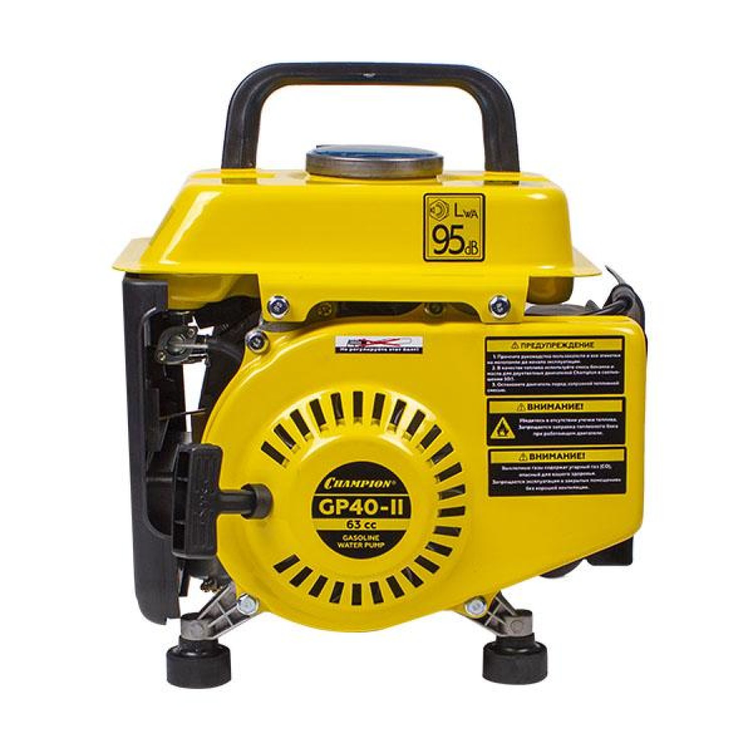 Мотопомпа Champion GP40-II - современное устройство, которое отличается повышенной надежностью и удобством в использовании. Таким агрегатом сможет с комфортом пользоваться человек любой комплекции. Отличный вариант для дачи и для частного дома. Мотопомпу этой модификации можно использовать не только с чистой водой, но и с жидкостью, которая имеет незначительные загрязнения. При работе данный агрегат издает немного шума. Это позволяет использовать его возле дома.