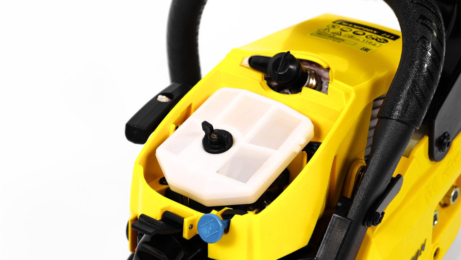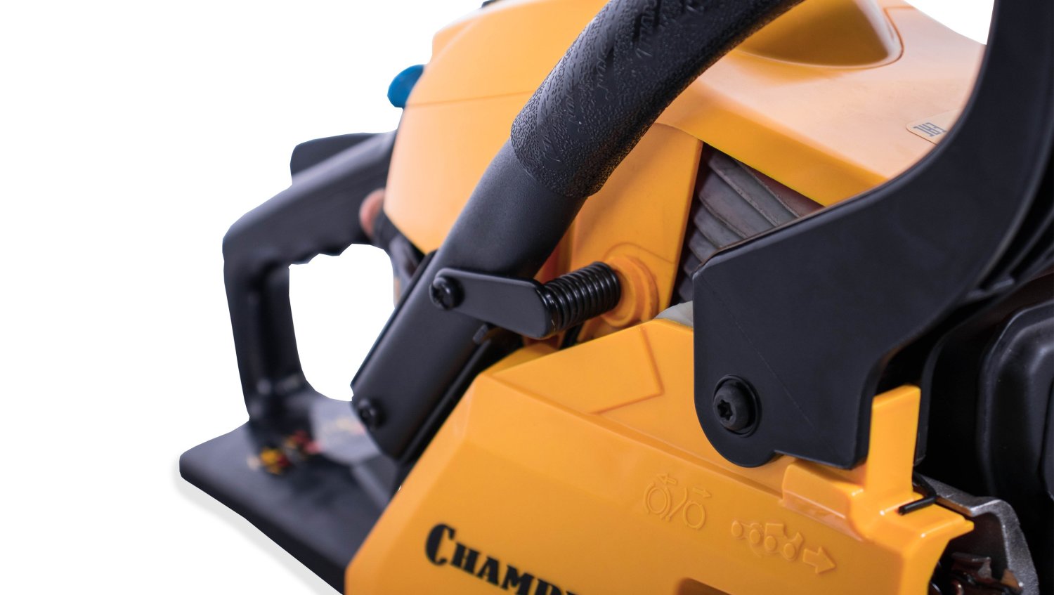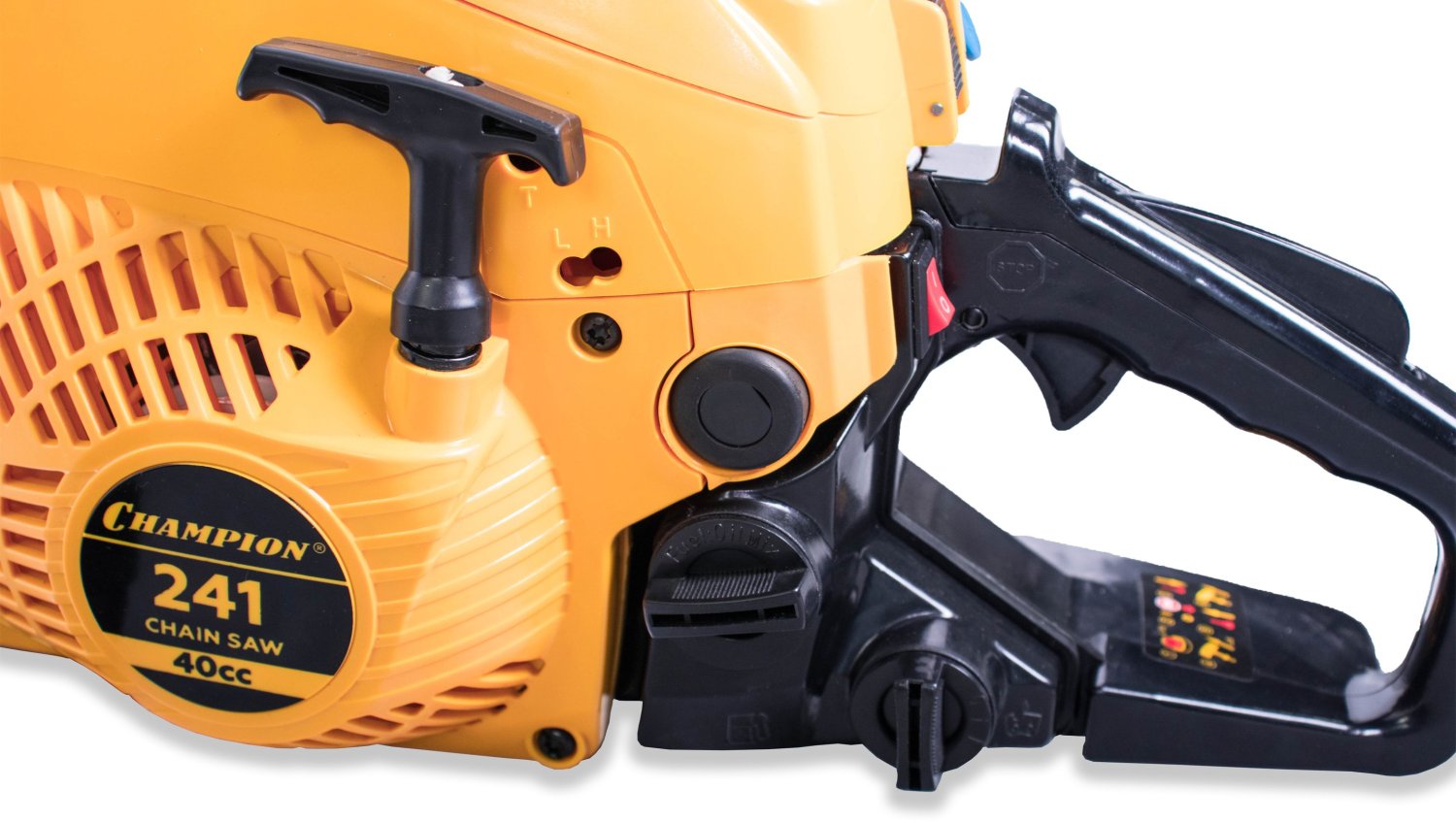 Мощность пилы составляет 2,45 лошадиных сил, а сам двигатель изготовлен с хорошими допусками, благодаря чему относится к классу ЕВРО-3 и использует топливную смесь с минимальным количеством двухтактного масла (50:1), всего 20 грамм на 1 литр бензина, как у европейских и американских брендовых пил. Бензопила Champion 241-16 поставляется со стандартной пильной цепью шагом 3/8 дюйма. Натяжка цепи производится посредством стальной натяжной рейки, ключом, поставляемым в комплекте пилы, а прижим пильного полотна производится двумя стальными гайками. Такая конструкция менее удобная, чем новомодные системы упрощенной натяжки, но более надежная и долговечная.