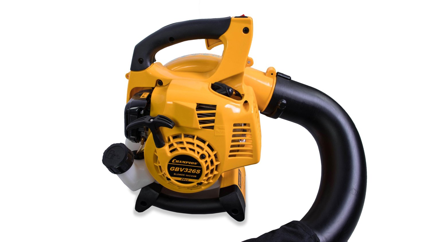 Садовый бензиновый пылесос Champion GBV326S оборудован легким и компактным двухтактным двигателем внутреннего сгорания с рабочим объемом цилиндра в 26 кубических сантиметра и мощностью 1 лошадиную силу. Мотор характеризуется низким уровнем вибрации и шума, стабильной работой в любом положении, умеренным расходом топлива и большим моторесурсом. Масса пылесоса составляет 4 килограмма, потому длительная работа будет обременительной для пожилого человека или подростка. Емкость топливного бака составляет 0.5 литра, при скромном расходе этого достаточно для длительной работы. За час эта модель перекачивает 612 кубических метров воздуха, что позволяет эффективно использовать ее в просторном саду или большом дворе.