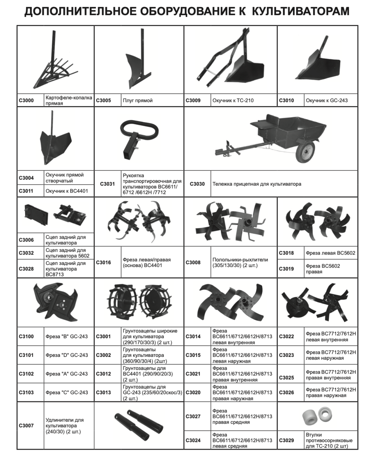 оснастка - плуг, рыхлитель, сошник, фрезы, картофелекопалка.