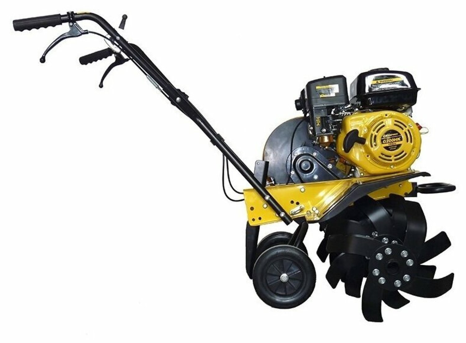 Достаточный для твердых почв вес Четырехтактный двигатель champion Большая мощность(6,5 л.с.) Верхнее расположение клапанов Задний ход (реверс) Регулируемая ширина захвата. Легкий запуск Регулировка оборотов двигателя Низкий уровень шума Система электронного зажигания Цепной разборный редуктор на болтах Ременный привод Ручка регулируется в двух плоскостях Откидывающееся транспортировочное колесо.