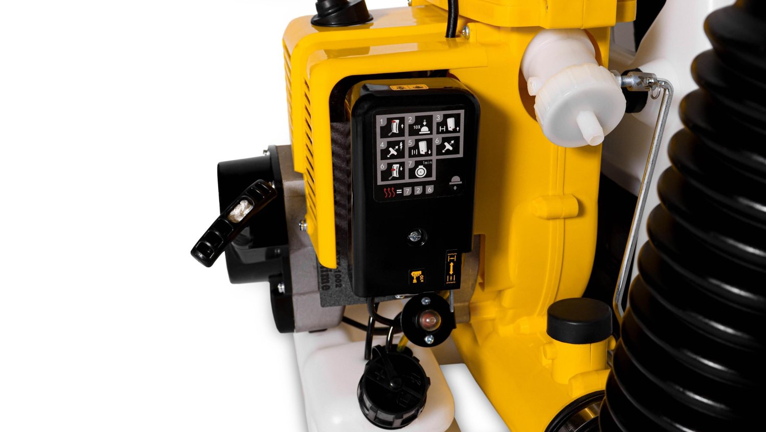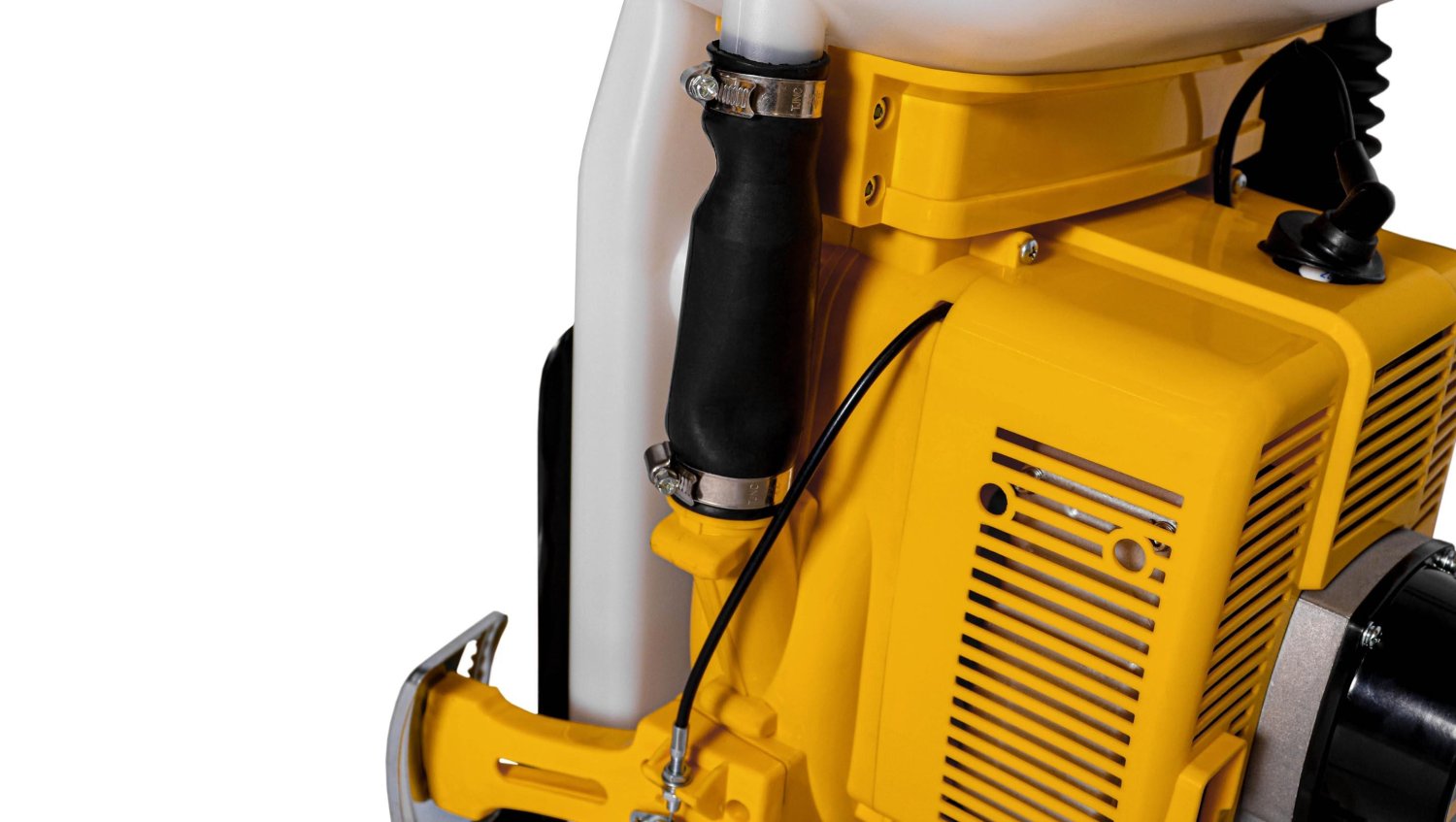 Опрыскиватель оснащен надежным 2-тактным двигателем мощностью 5.4 л.с. Этой мощности достаточно для того, чтобы оператор мог быстро обработать большую территорию, поскольку максимальный расход жидкости инструмента – 3,5 л/м, а порошка - 5 кг/мин. Рабочий объем мотора составляет 91.6 см3. Двигатель быстро запускается, расходуя при этом 2,8 л/ч бензина. Двигатель заправляется топливной смесью, которая состоит из бензина марки не ниже АИ-92 и масла для 2-тактных двигателей в соотношении 50:1. Объем топливного бака составляет 1,5 л.
