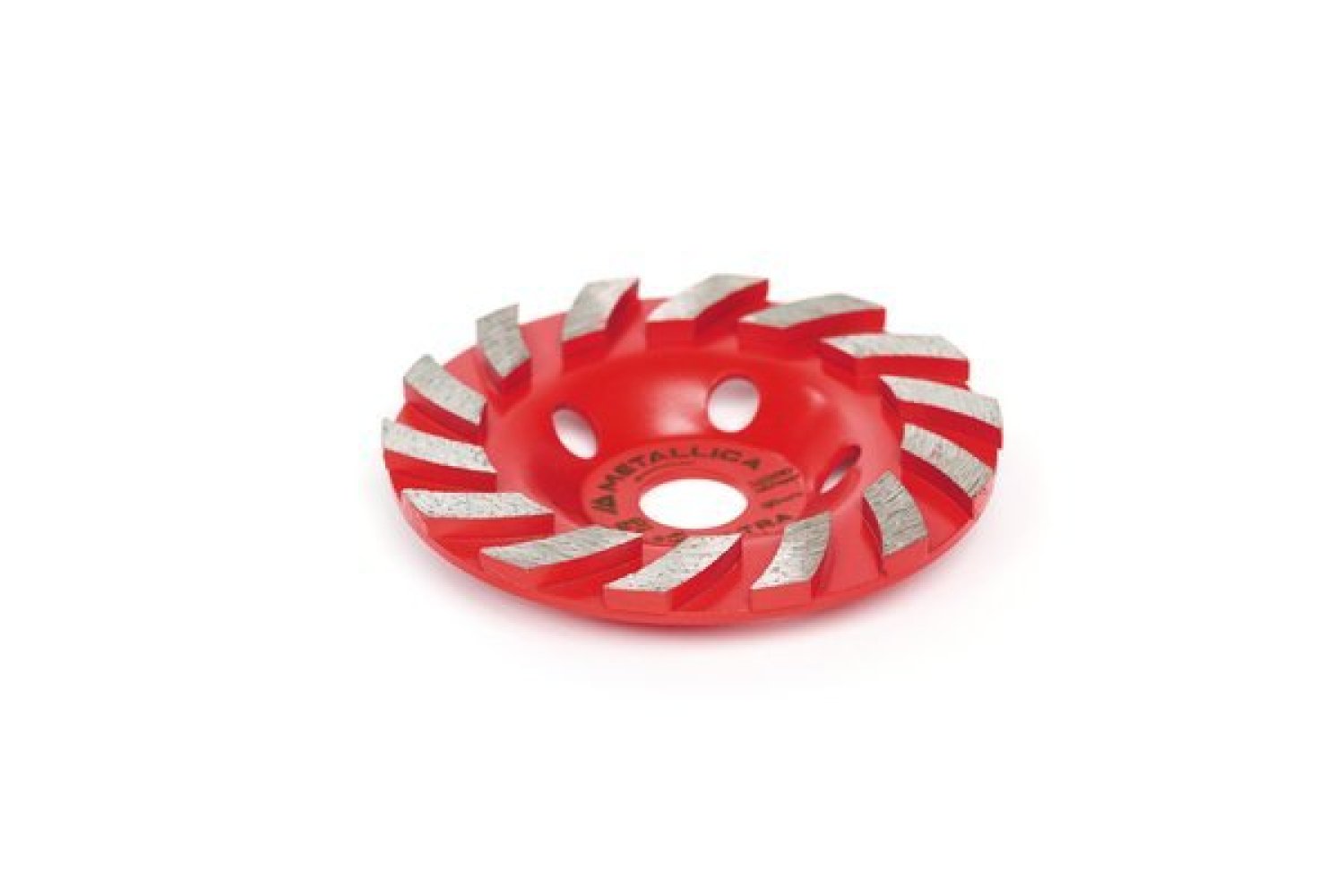 10 больших отверстий в диске для производительного удаления бетонной пыли с помощью пылесоса и уменьшения массы чашки. Сухое шлифование. Не подходит для гранита. При обработке материалов большой абразивности существенно сокращается ресурс чашки.