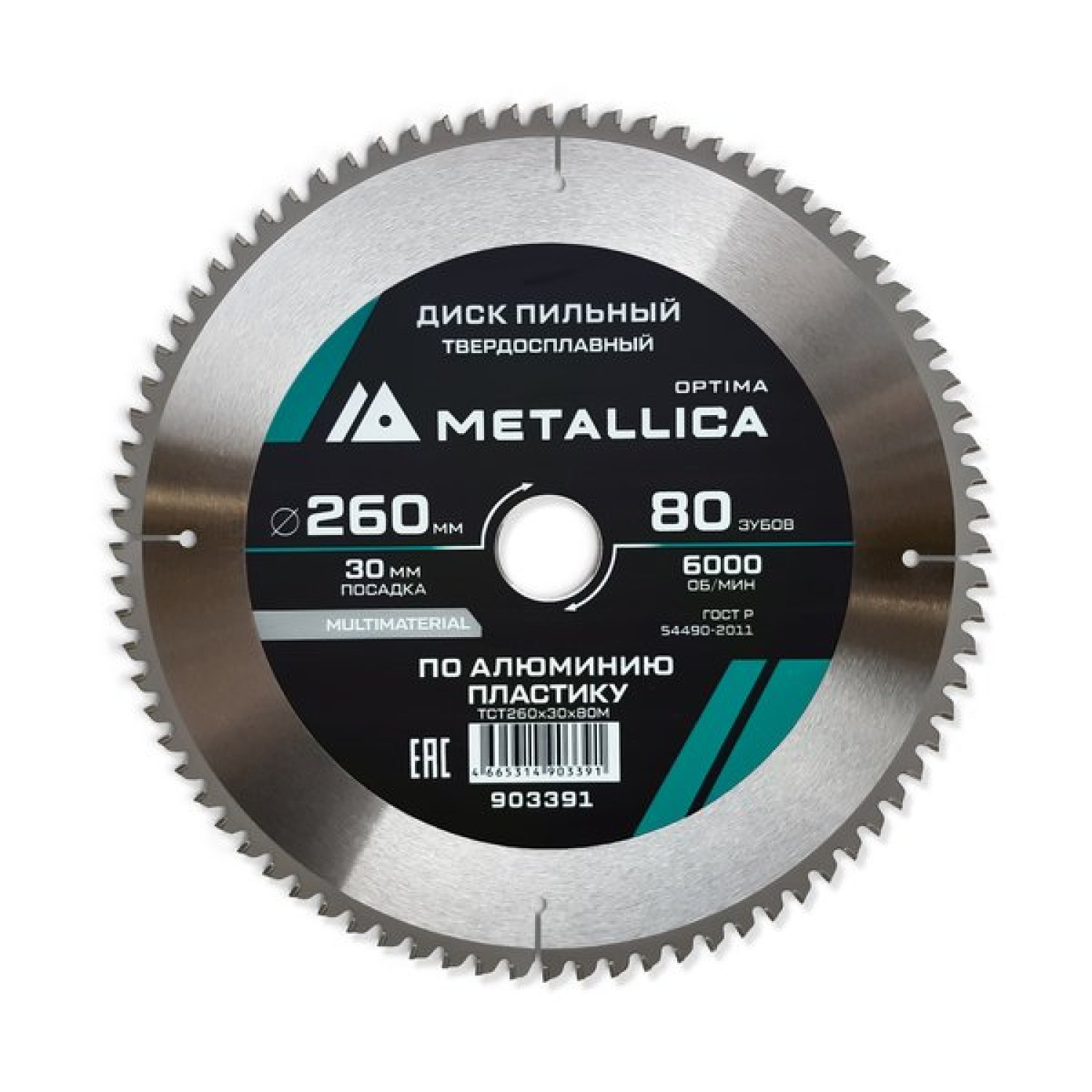 Диск пильный твердосплавный Multimaterial предназначен для чистовой распиловки алюминиевого листа и профиля, мягких цветных металлов, ламината, ламинированных ДСП, МДФ, фанеры, твердых пород дерева, паркета, тонкого и хрупкого пластика, пакетов материалов торцовочной или настольной пилой. Изготовлен из пружинной стали 65Г с последующей закалкой корпуса до твердости 40-45 HRC. Корпус имеет специальные прорези для компенсации теплового расширения, возникающего в процессе работы. Металл-композитные твердосплавные режущие зубы, изготовленные из карбида вольфрама марки YG8X (K10) с содержанием кобальта 5,7%, имеют повышенную твердость 92-93 HRA, и износостойкость для длительной работы по деревосодержащим композиционным абразивным материалам, таким как ламинат и ЛДСП. Зубы припаяны к корпусу серебряным припоем. Угол атаки зуба -5 град. для исключения залома кромки тонких материалов. Зубы имеют специальную чередующуюся алмазную заточку: черновой зуб - трапециевидную заточку, чистовой зуб - прямую заточку. Зубы припаяны с зазором 0,3 мм по высоте для исключения сколов по кромке реза. Малое расстояние между зубами обеспечивает аккуратную кромку заготовки при пилении алюминия, ламинированных материалов и твердого дерева поперек волокон. Не подходит для черных металлов и мягкого дерева. Серия OPTIMA. Мод. TCT260x30x80M. Диаметр 260 мм, посадочное отверстие 30 мм, ширина пропила 3,0 мм, глубина пропила 80-93 мм, 80 зубов, максимальная скорость вращения 6000 об/мин.