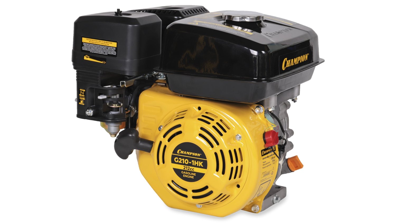 Двигатель Champion G210-1HK четырехтактный, одноцилиндровый, с воздушным охлаждением. Подходит для использования с садовой техникой. Посадка вала - шпонка.