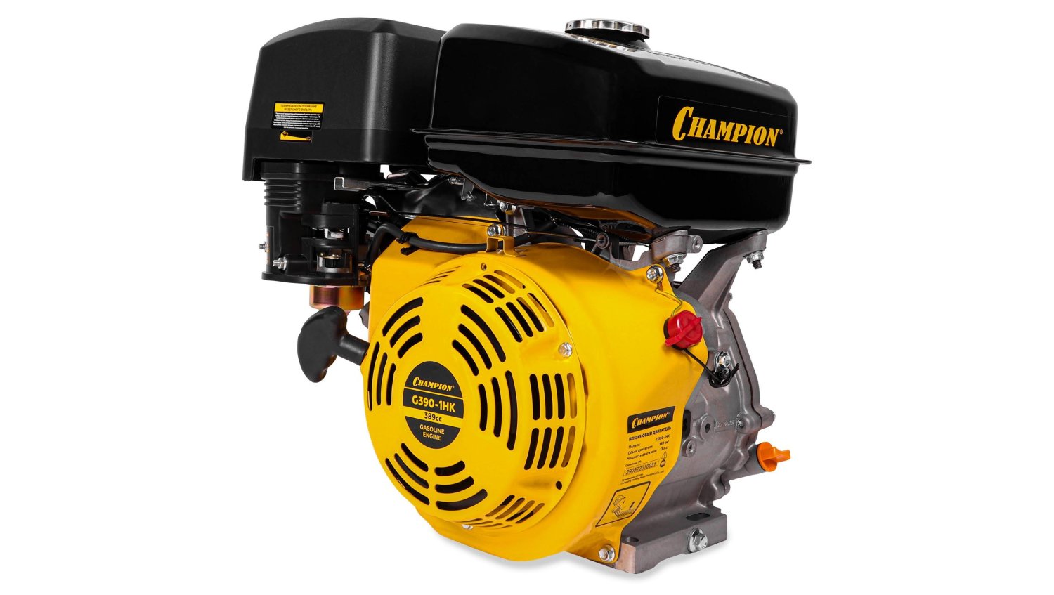 Двигатель Champion G390-1HK разработан для тяжелых мотоблоков, культиваторов, мощных газонокосилок и прочей техники. Работая на бензине и имея четырехтактный цикл, мотор сочетает надежность, простоту в обслуживании с высокой производительностью и экономичностью. Корпус материала выполнен из легкого сплава, что обеспечило приемлемый вес для такой мощности. Также материал характеризуется устойчивостью к воздействию воды и влаги, а также хорошей теплопроводностью, что облегчает задачу охлаждения рабочей зоны.