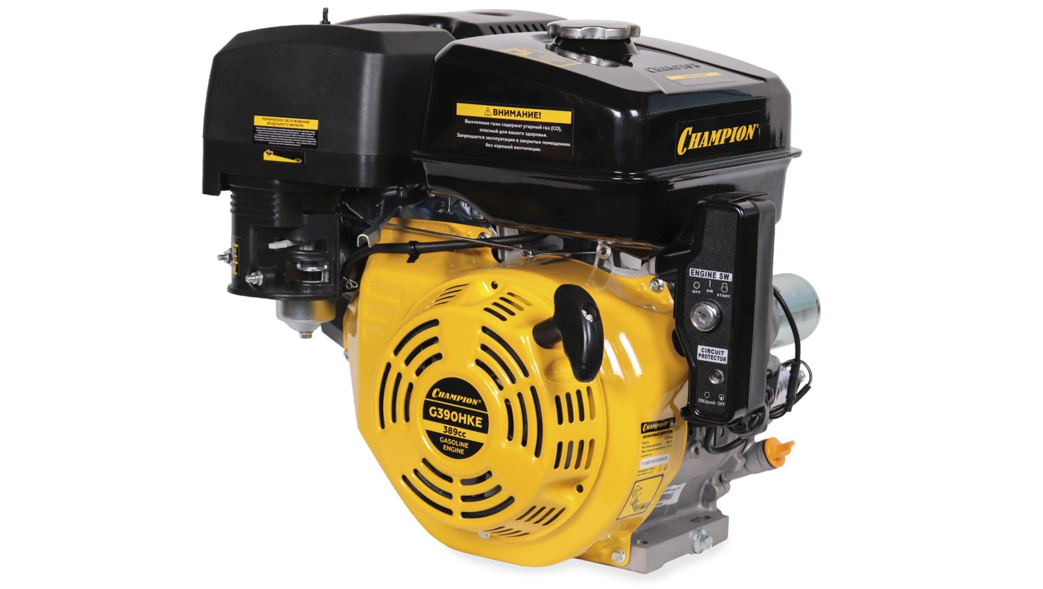 Двигатель Champion G390HKE - на сегодняшний день самый мощный в линейке, разработанный для использования на многофункциональных мощных мотоблоках, газонокосилках, агрегатах для перекачки воды или помола круп, снегоуборщиков. Обладая большим ресурсом и эргономичной конструкцией, модель хорошо подходит для активного использования в условиях большой нагрузки. Мощность в 13 л.с. способна удовлетворить потребности при выполнении даже самых тяжелых работ, при этом двигатель объемом 389 см3 достаточно экономно расходует топливо. Поршень расположен внутри гильзованного цилиндра, чугунная гильза обладает существенно большим ресурсом, чем обычная алюминиевая, благодаря чему удалось увеличить общий ресурс двигателя.