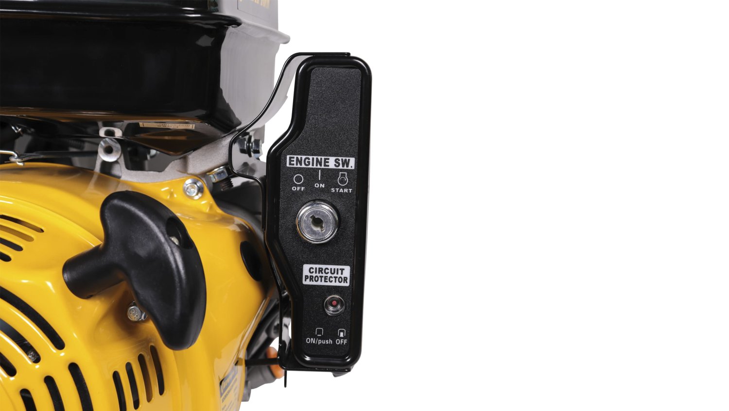 американская технология огромная мощность(13 л.с.) электростартер (запуск поворотом ключа) двигатель 4х тактный зажигание электронное чугунная гильза цилиндра верхнее расположение клапанов легкий пуск система декомпрессии продуманная конструкция малый вес и габариты датчик падения уровня масла в картере при необходимости разкмыкает цепь зажигания высокое качество материалов двойной фильтрующий элемент горизонтальное расположение коленчатого вала