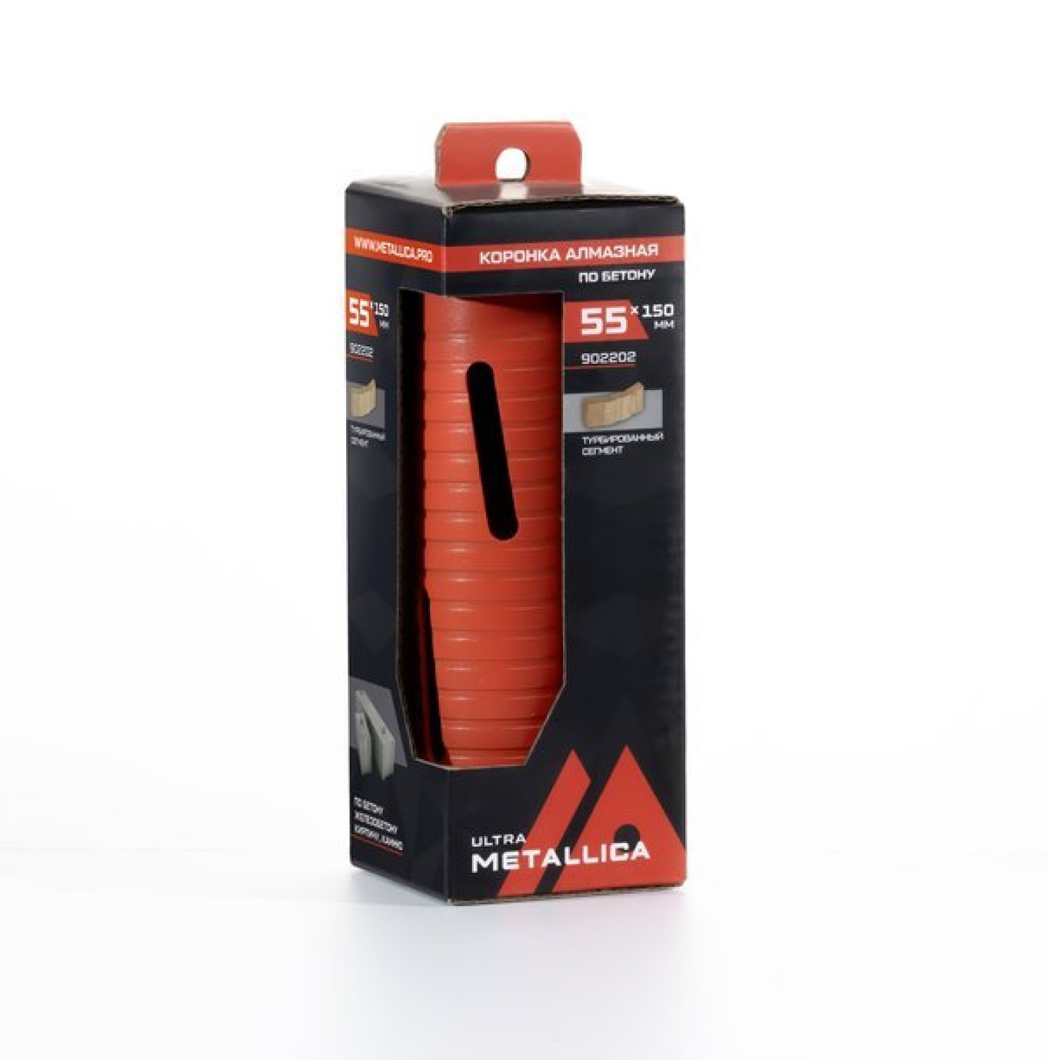 Изготовлена из инструментальной стали. Алмазные сегменты изготовлены методом вакуумного спекания, припаяны серебряным припоем. Металлическая связка алмазного сегмента средней твердости для производительного сверления общестроительных материалов при высоком ресурсе.