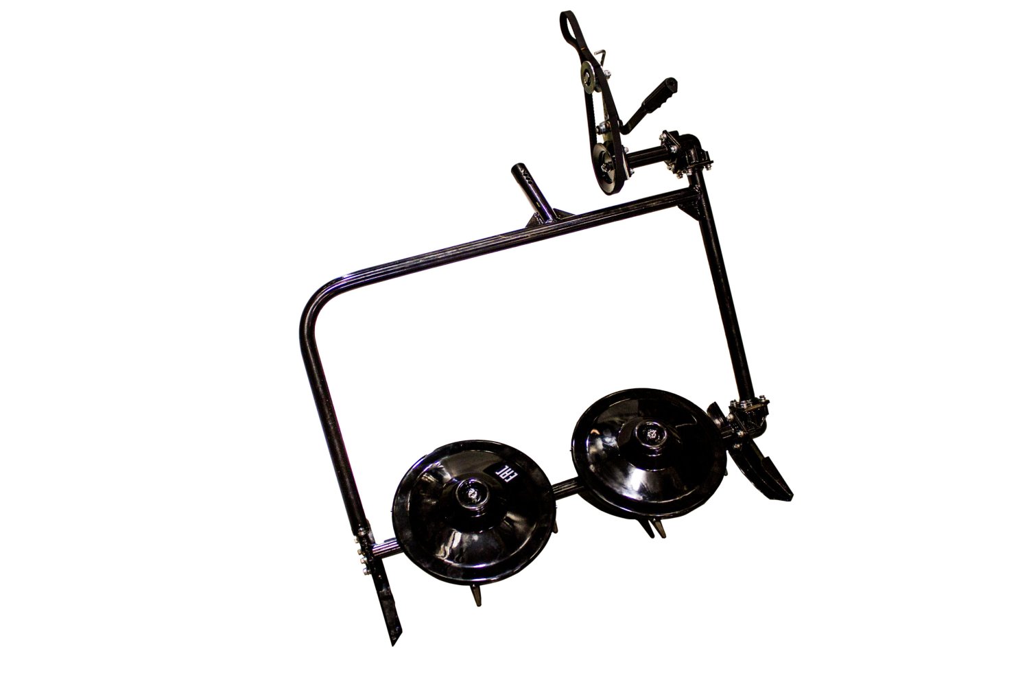 Конструкция: Прочная стальная рама и два косильных барабана с четырьмя свободно вращающимися ножами каждый.