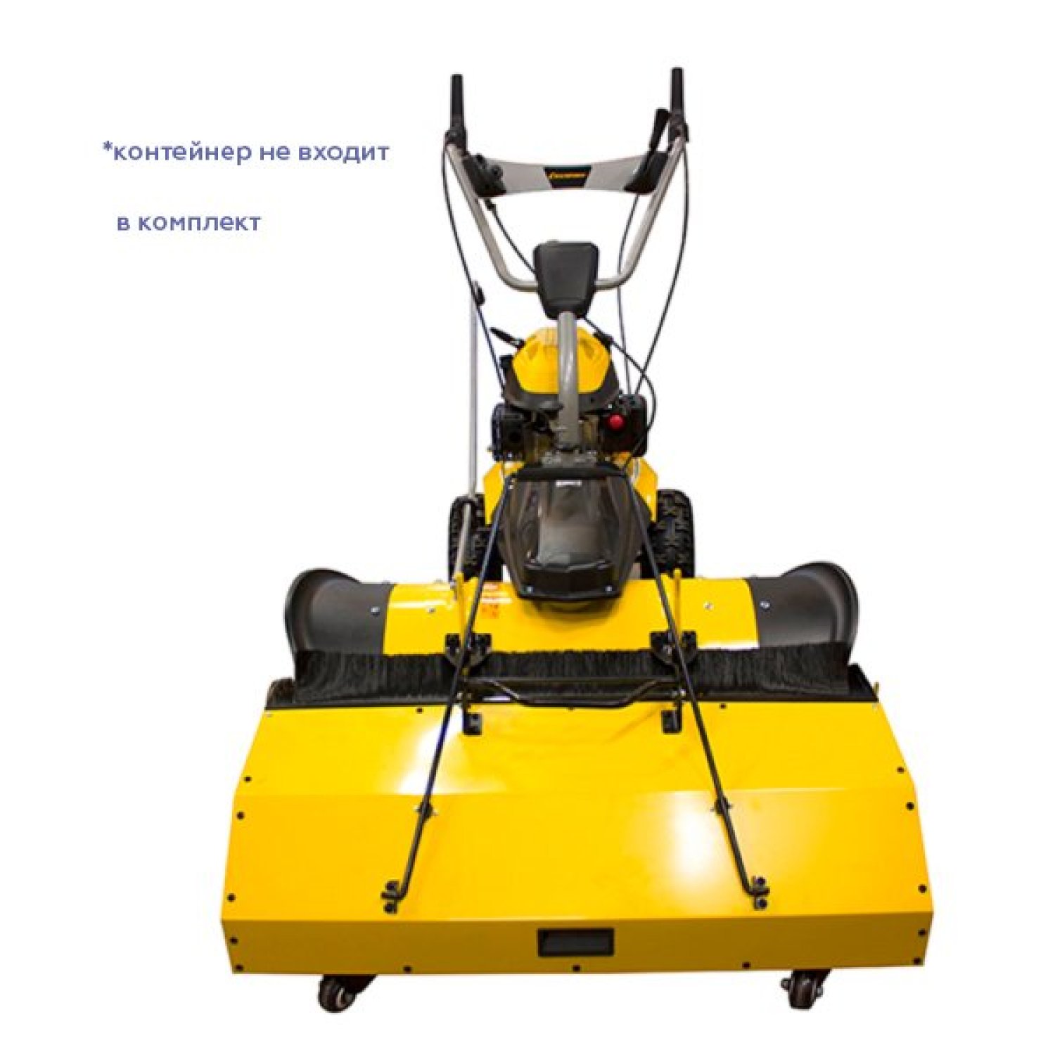 Подметальная машина Champion GS 50100 может быть доукомплектованна специальным контейнером, собирающим отлетающий от щетки мусор или ножом отвалом для сдвижения снежной массы, а так же роторным снегоотбрасывателем, откидывающим снег до 15 метров на 180 градусов в любом направлении.