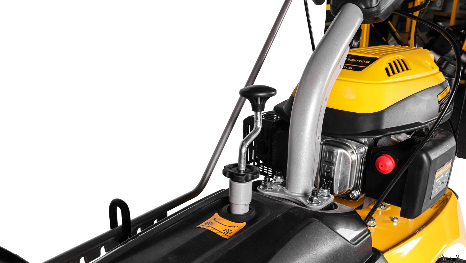 Машина оборудованна четырехтактным всесезонным мотором Champion G170VK. Этот двигаетль имеет систему легкого запуска и гарантирует необходимую мощность для уборки территорий. Подметальная машина оборудована системой преключения скоростей, коих имеет 3 вперед и 1 назад.