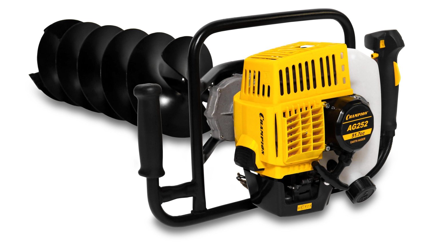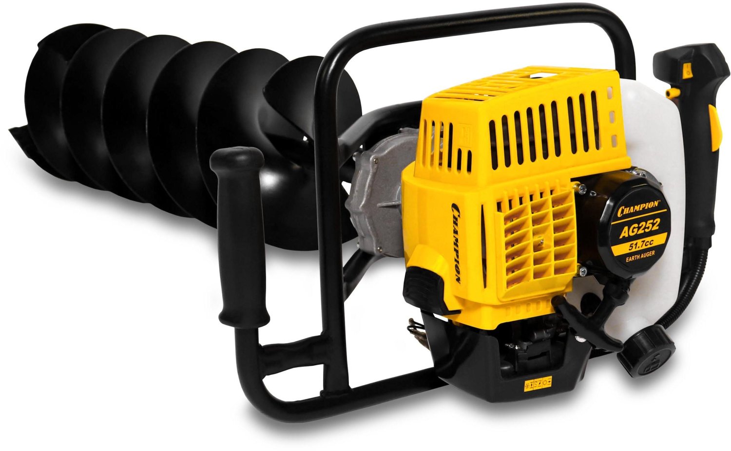 Бензобур Champion AG252 превосходно подходит для быстрой и эффективной работы по бурению небольших ям для столбов, под забор или для посадки деревьев. Такой инструмент будет весьма полезен на строительном объекте, а также при посадке большого сада. Компактный и легкий бензобур Champion AG252 оборудован высокопроизводительным и отказоустойчивым двухтактным двигателем с рабочим объемом цилиндра в 51 кубический сантиметр. Эта силовая установка способна развивать мощность до 2.2 лошадиных сил, при этом отличается низким уровнем шума и вибрации, экономичностью и значительным моторесурсом.