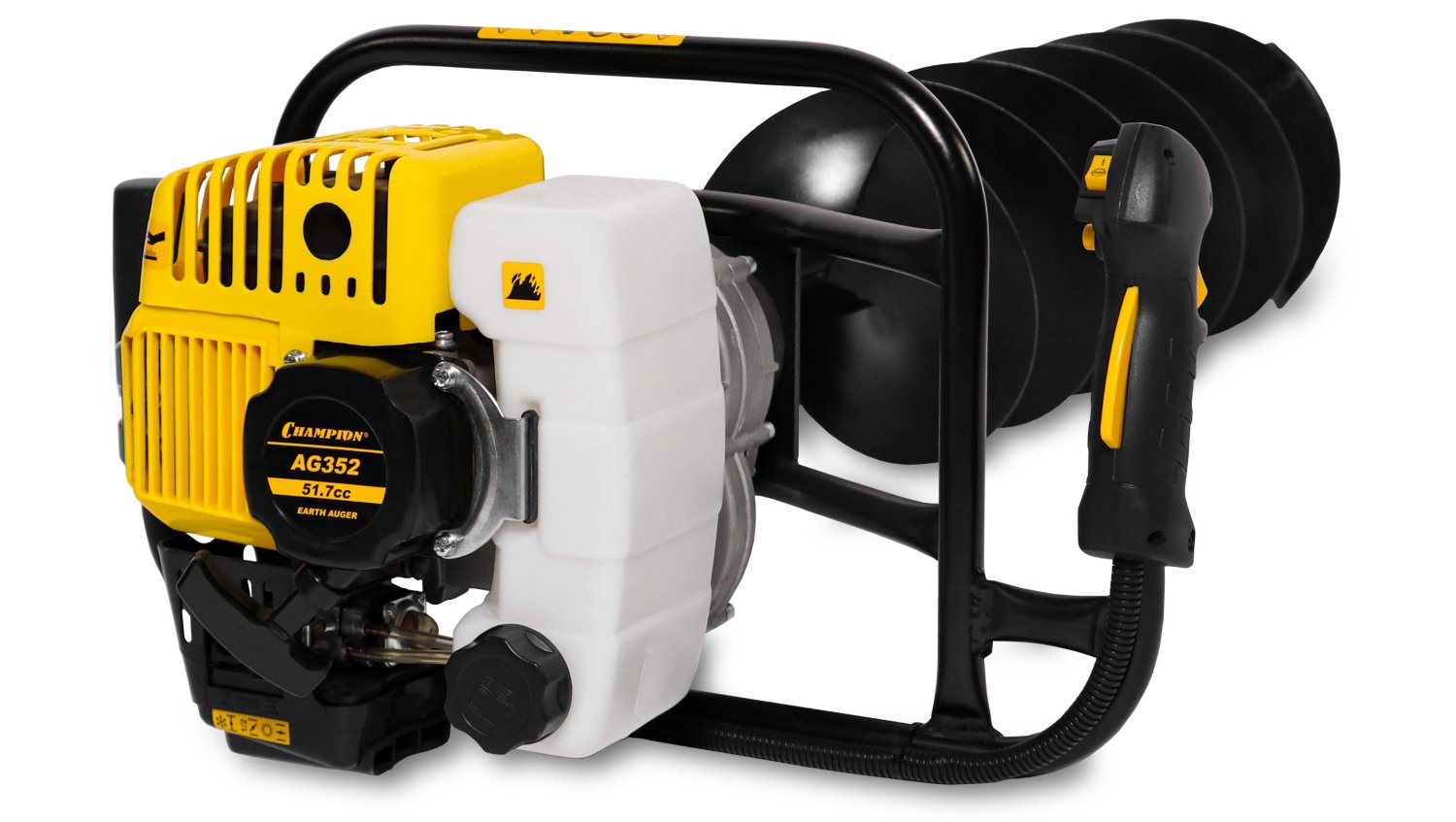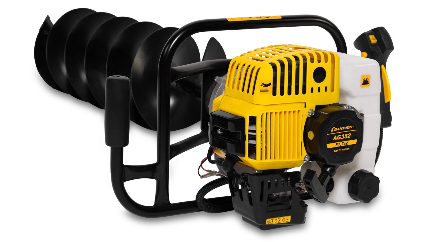 Бензобур Champion AG 352 (без шнека) – компактная бытовая модель. Прекрасно подойдет для установки столбов для забора, бурения лунок для зимней рыбалки и прочих работ. Данная модель не комплектуется буром, поэтому можно подобрать его отдельно исходя из тех задач, которые требуется выполнить. Бензобур способен работать с бурами диаметром до 250 мм. для льда или почвы.