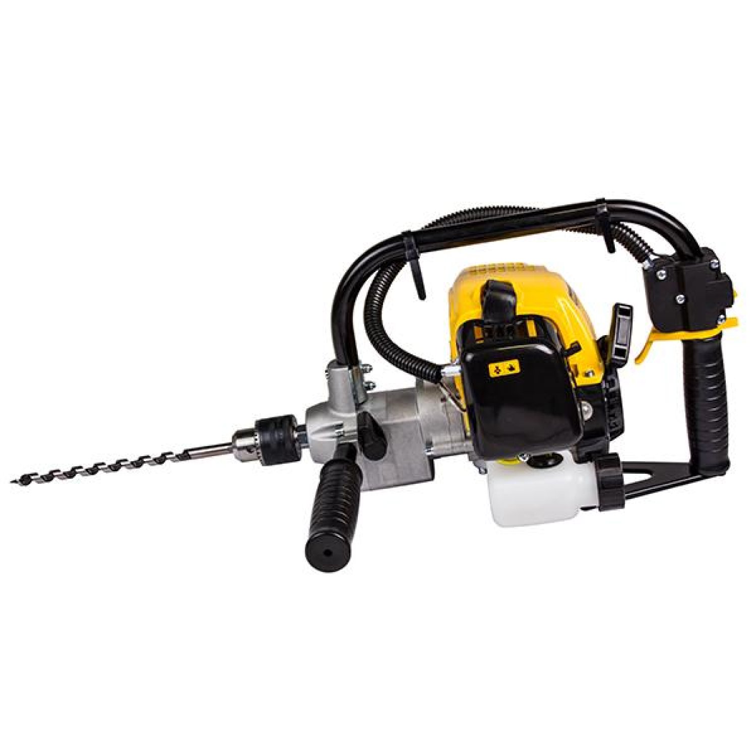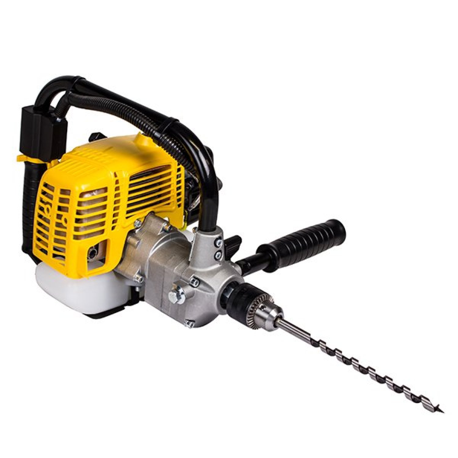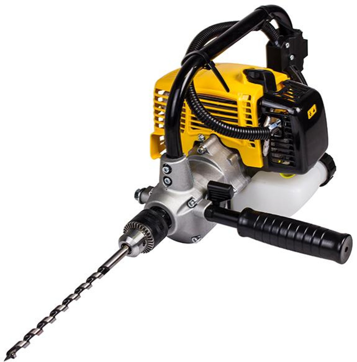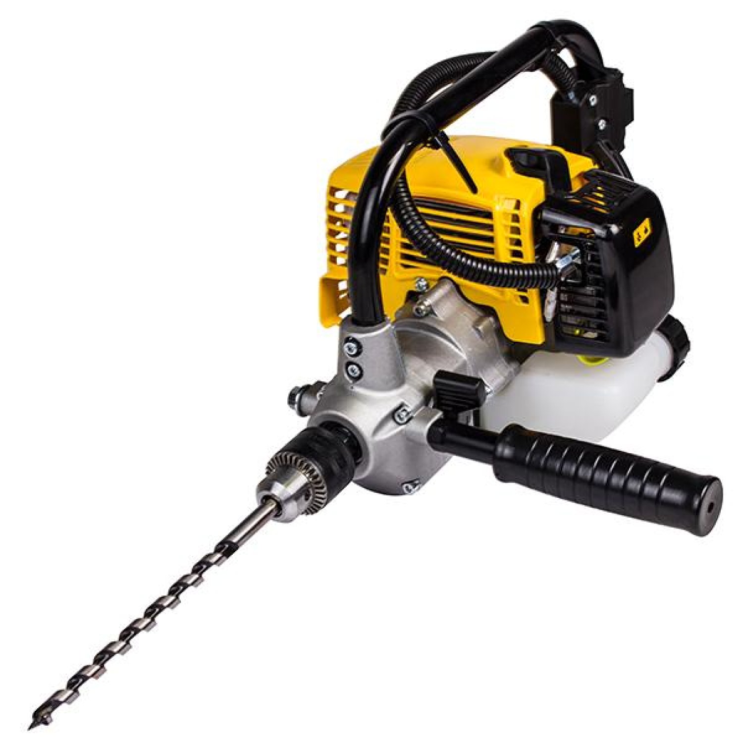 Дрель ручная Champion DR230 оснащена одноцилиндровым 2-тактным бензиновым двигателем мощностью 0.9 л.с. Запуск двигателя осуществляется ручным стартером. Рычаг блокировки старта предотвращает случайный запуск инструмента. Двигатель заправляется топливной смесью, которая состоит из бензина не ниже АИ-92 и масла для 2-тактных двигателей в соотношении 50:1.