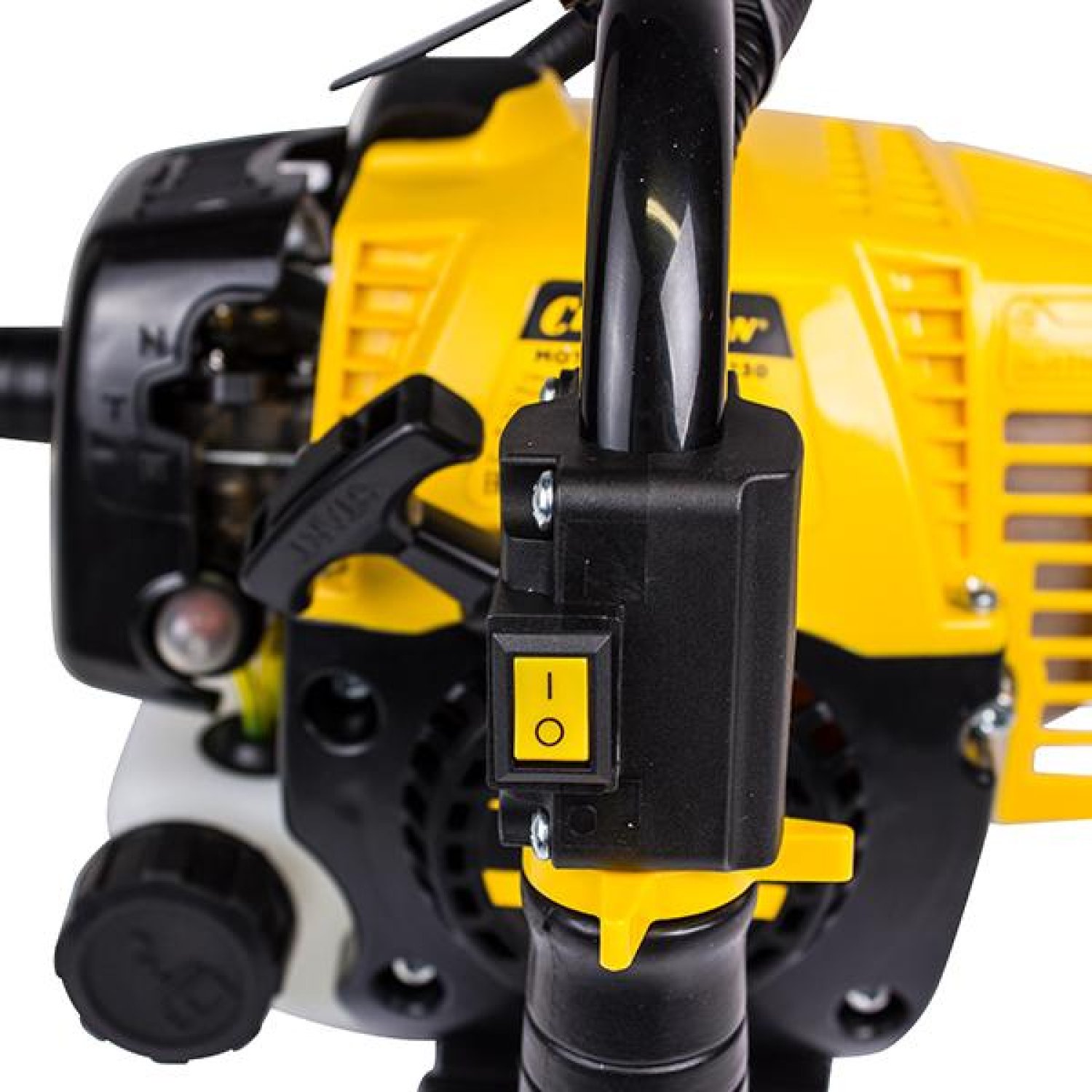 Мягкая прорезиненная ручка моторизированного бура Чемпион DR230 комфортна для работы оператора. Удобный в использовании переключатель позволяет менять направление вращения сверла. Диафрагменный карбюратор позволяет двигателю стабильно работать даже при разных углах наклона инструмента. В комплект поставки входит: сверло, комплект ключей, канистра для смешивания топлива.