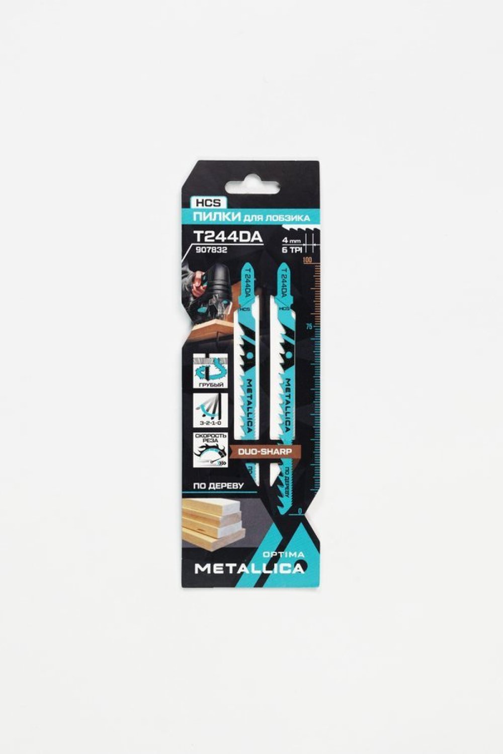 Пилки для лобзика METALLICA Optima T244DA, 100/75мм шаг 4/1,2мм HCS двустор, крив. рез, по дер. 2шт