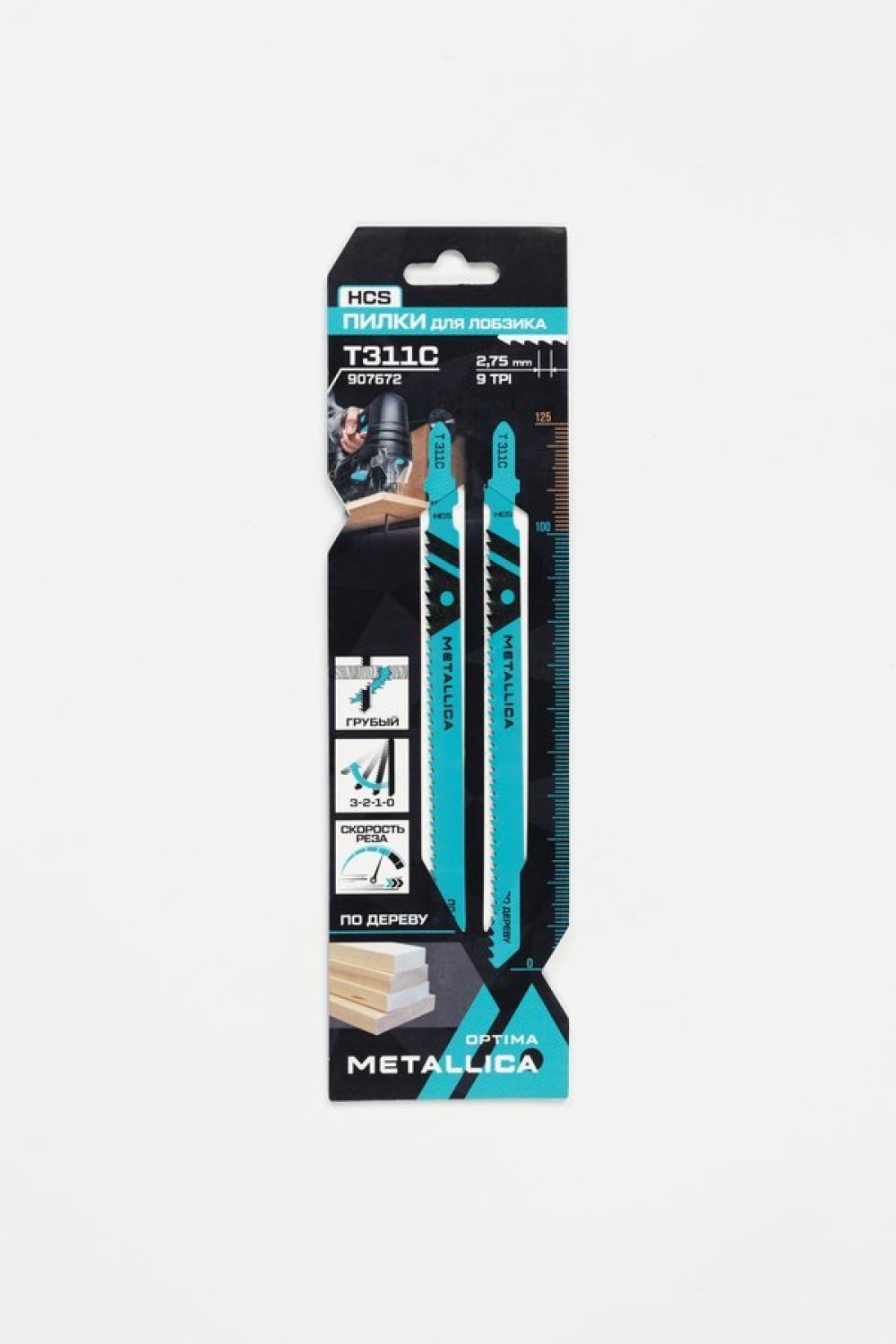 Пилки для лобзика METALLICA Optima T311C, 125/100мм шаг 2,75мм, HCS грубый рез, по дереву 2шт