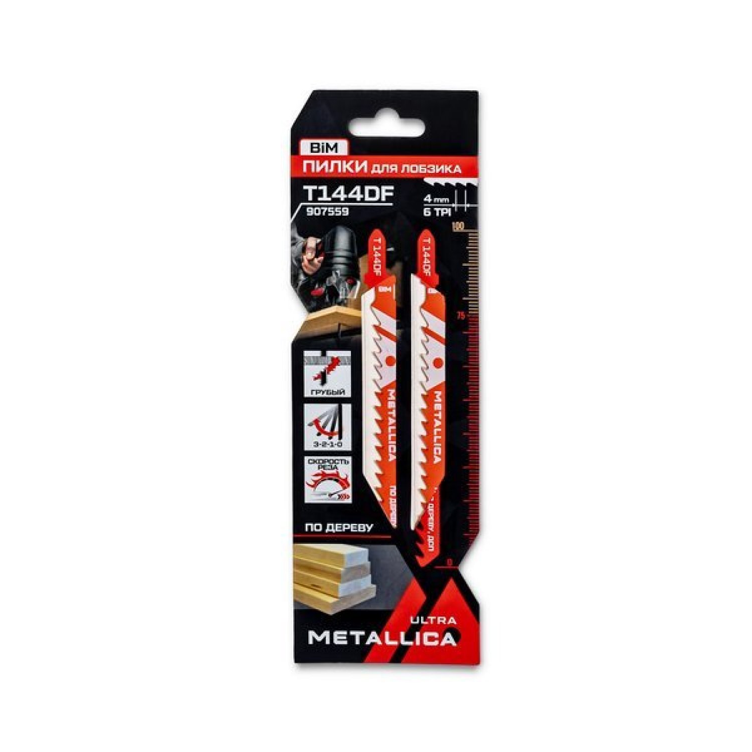 Пилки для лобзика METALLICA Ultra T144DF, 100/75мм шаг 4мм, BiM грубый рез, по дереву, ДСП 2шт