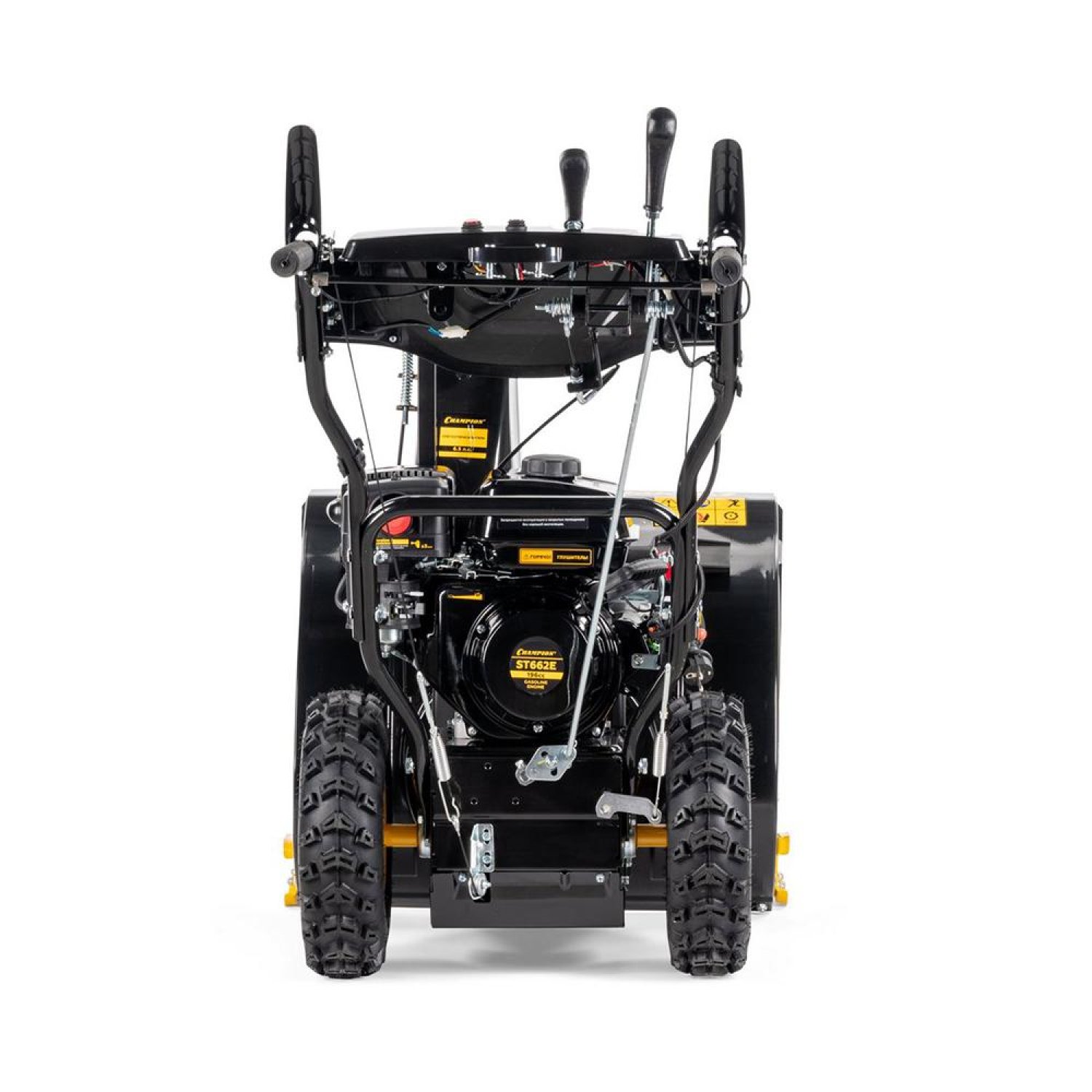 Снегоуборщик бензиновый Champion ST662E - комплектуется высокопроизводительным двигателем с верхним расположением клапанов, который легко запускается даже при отрицательной температуре. Основной особенностью данного двигателя является низкий расход топлива. Вместительный топливный бак, позволяет использовать снегоуборщик при непрерывной работе.