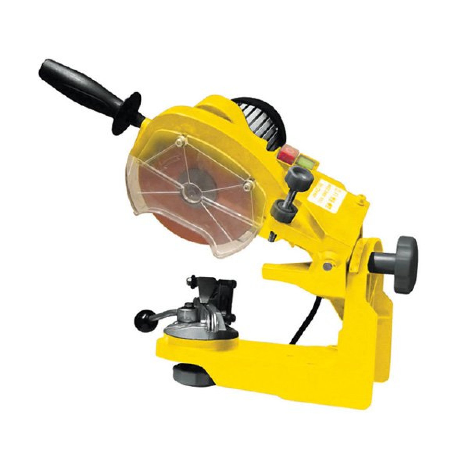 Станок для заточки цепей Champion C2001 предназначен для качественного затачивания цепей любых цепных электро- и бензиновых пил. Он отличается удобством в применении и оснащен мощным двигателем. Используя данную модель, можно заточить не только основные режущие зубья в цепи, но и упорные резцы. В качестве точила используется абразивный диск диаметром 145 мм. Скорость его вращения достигает 3000 об/мин на холостом ходу. Он изолирован защитным кожухом. Угол наклона пильного полотна меняется. Он регулируется с помощью соответствующей шкалы установки. Так же предусмотрена регулировка глубины заточки.