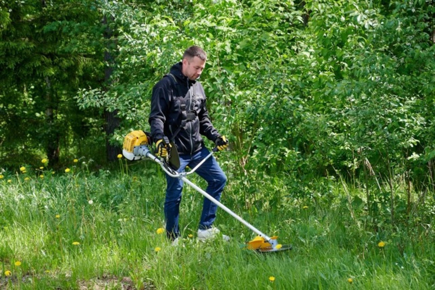 Брали триммер на двоих с соседом по участку. Оба довольны — запускается легко, держит стабильные обороты. Траву, крапиву и даже мелкие кусты срезает хорошо. Для женщины, конечно, тяжеловат, но за счёт эргономичной рукоятки и ремня можно работать без сильной усталости.