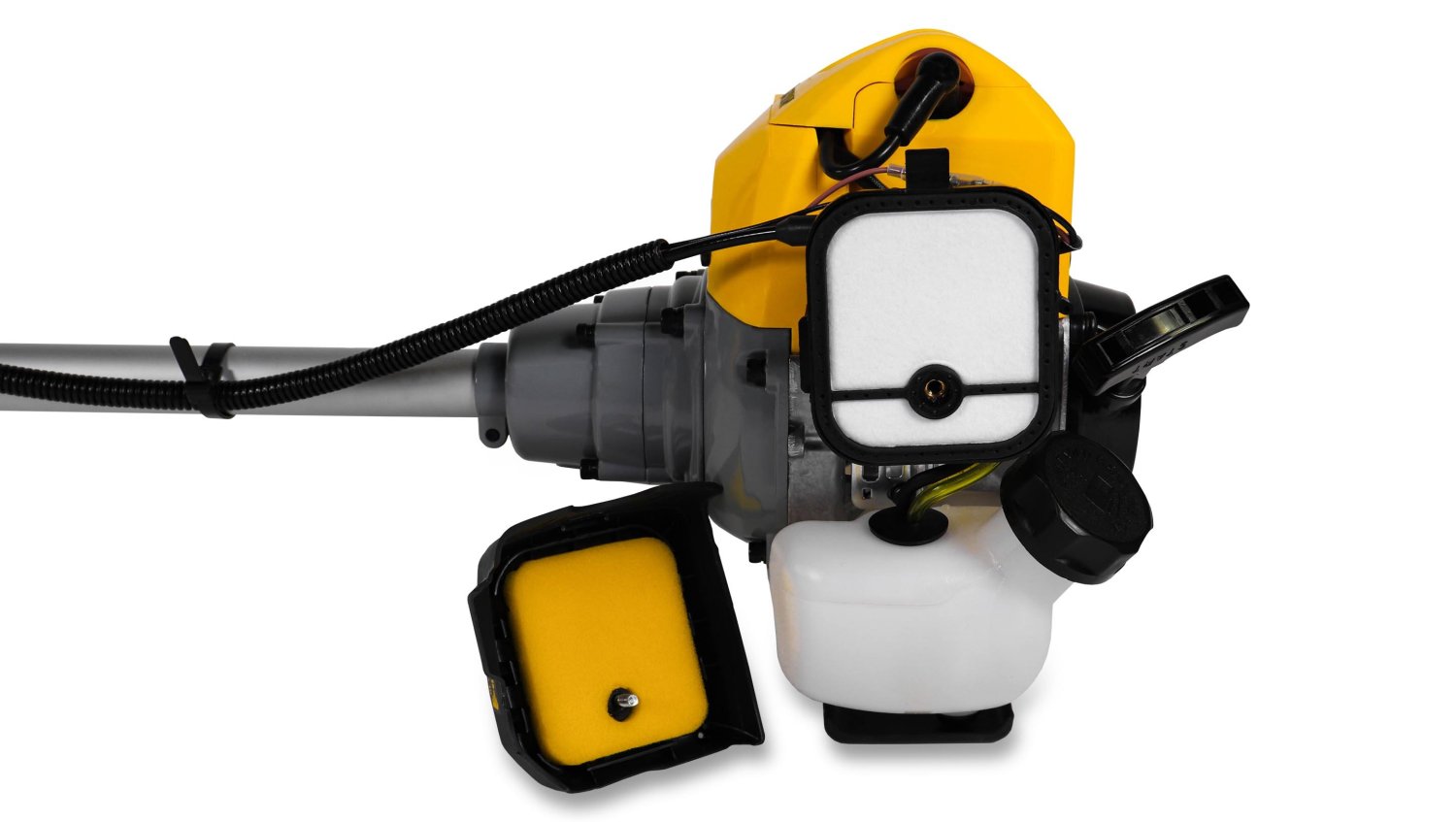 Модель оборудована велосипедной U-образной рукояткой для точного контроля и удобной рабочей позиции. В комплект входит плечевой ремень, металлический нож и полуавтоматическая катушка с леской. Прочный редуктор, большой топливный бак (1 л) и надёжная конструкция делают T444S-2 идеальным инструментом для продолжительной эксплуатации.