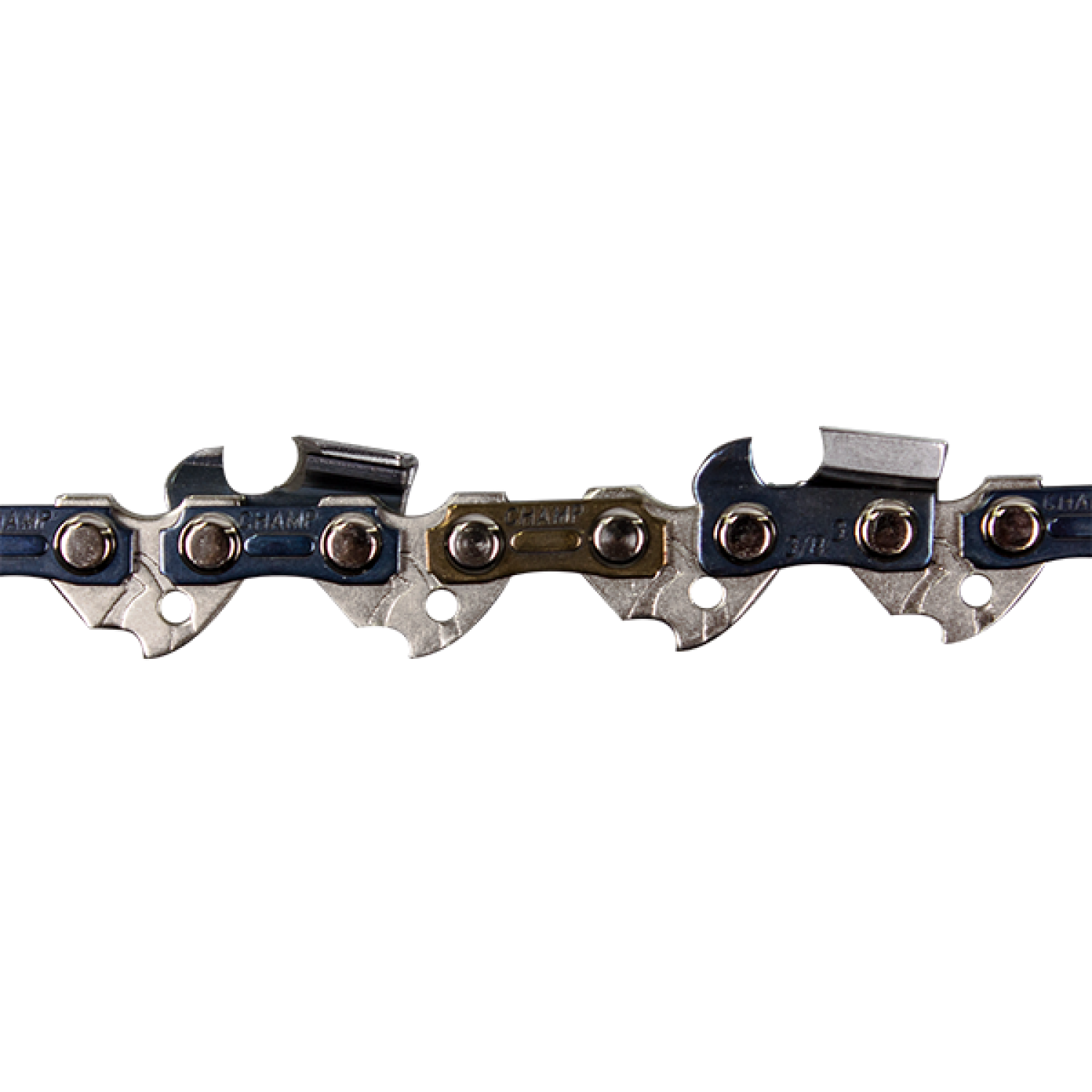 Чизельные (долотообразные) режущие звенья. Превосходное врезание, низкий уровень вибрации и шума, высокая производительность врезания и пиления, очень чистая поверхность реза. Увеличенная длина верхней грани режущего звена подразумевает больший ресурс и долговечность. На верхней грани режущего зуба присутствует канавка для обеспечения правильного угла заточки и указания границы заточки зуба. В ведущих звеньях выштампованы специальные каналы для эффективного распределения адгезионного масла по всей длине шины. Рекомендуется для непрофессиональных электрических пил и легких непрофессиональных пил с рабочим объемом двигателя до 35 см3 и с направляющими шинами длиной от 12” до 16” (30 - 40 см).